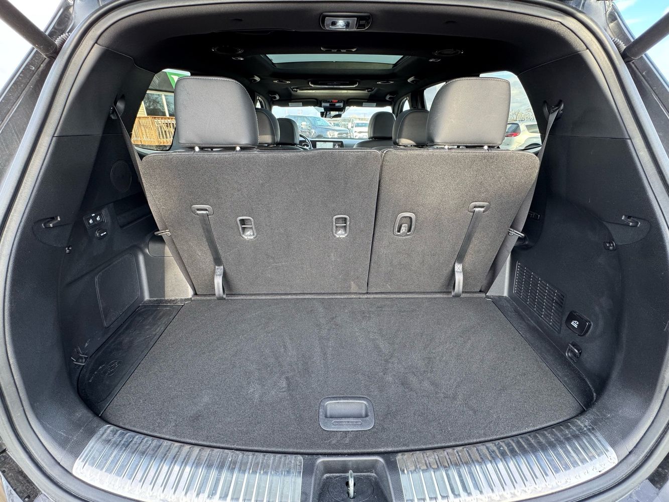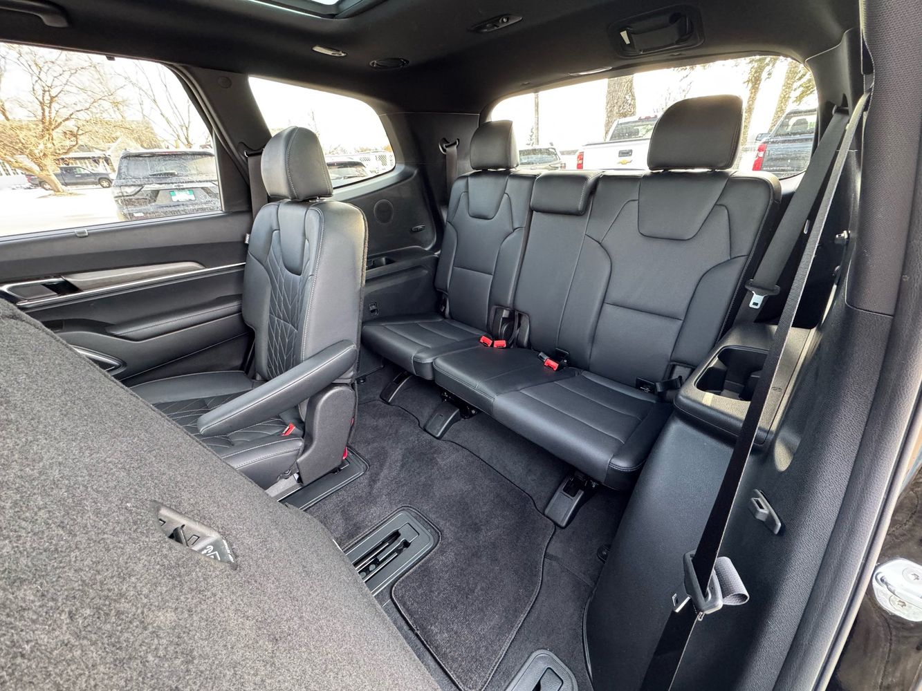 Third-row seatback upholstery: Carpet third-row seatback upholstery